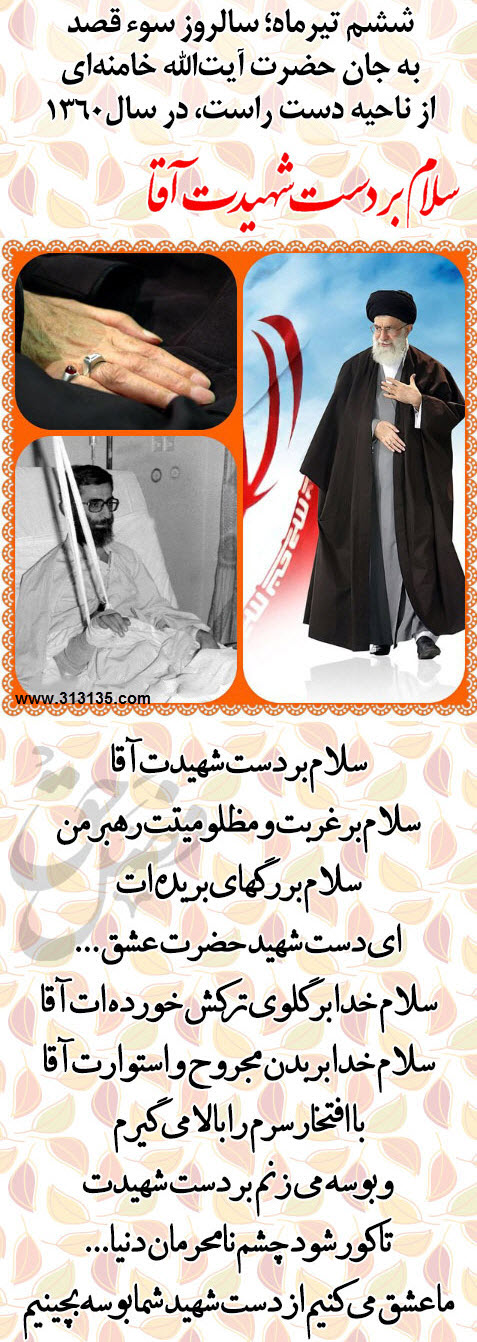 عید نوروز را به همهی خانوادههای ایرانی و افراد ایرانی در هر نقطهی عالم تبریک عرض میکنم. عیدتان مبارک باشد هممیهنان عزیز. بخصوص به خانوادههای عزیز شهیدان، به جانبازان عزیز، به خانوادههای محترم آنها، و به همهی ایثارگران تبریک عرض میکنم و یاد شهیدان بزرگوارمان و یاد امام عزیزمان را گرامی میدارم.