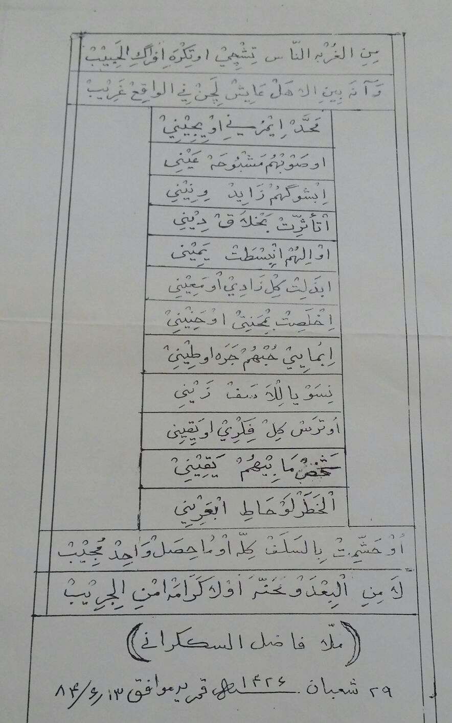 وحب کــشکول شـــربه العذب مِیّه