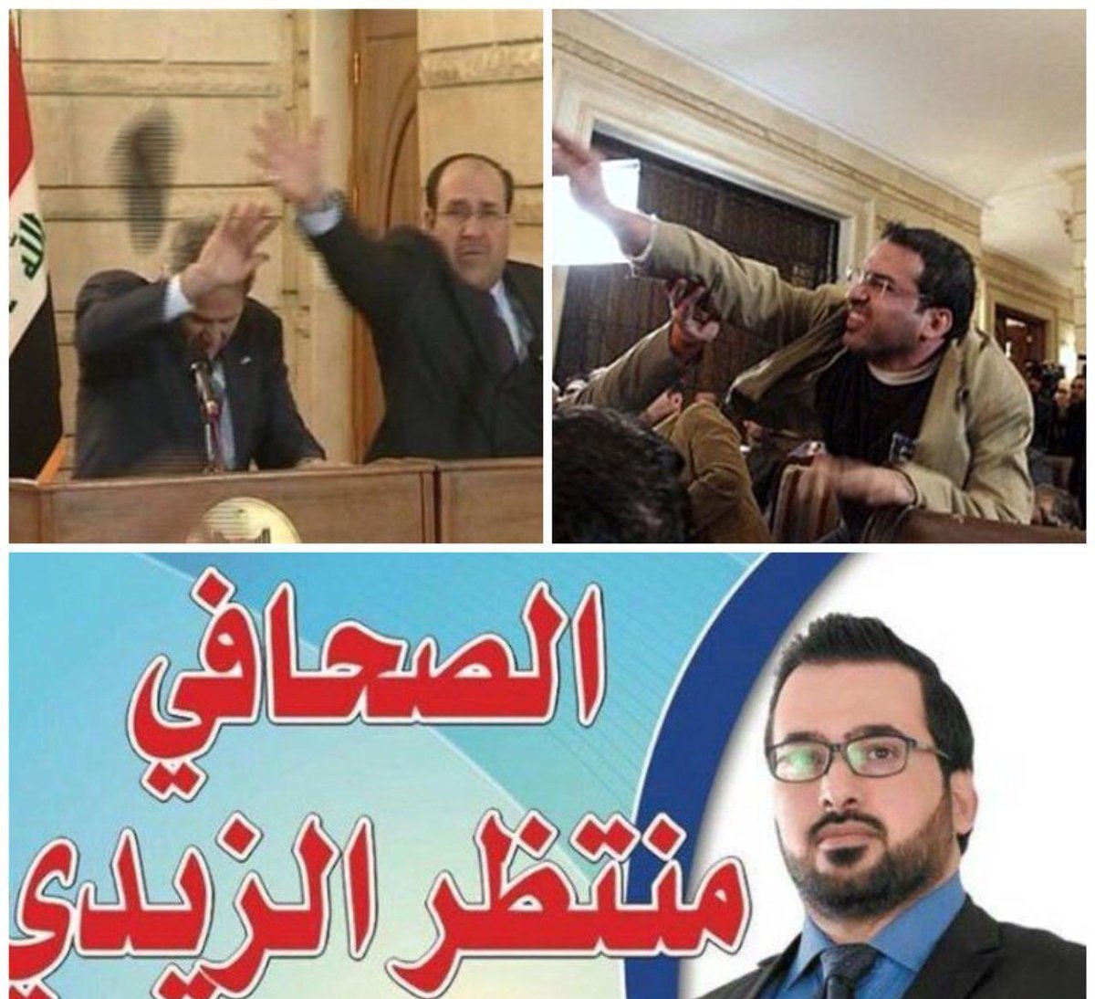 در غروب یکشنبه ۱۴ دسامبر ۲۰۰۸ (۲۴ آذر ۱۳۸۷) در جریان مصاحبه مشترک مطبوعاتی جرج بوش، رئیس جمهور وقت آمریکا و نوری مالکی با خبرنگاران در بغداد، «منتظر الزیدی» خبرنگار عراقی تلویزیون البغدادیه،کفش های خود را یکی پس از دیگری به سمت بوش پرتاب کرد، او از برخورد کفش ها با سرش جلوگیری کرد. الزیدی پس از پرتاب اولین کفش به بوش وی را «سگ» خطاب کرد.